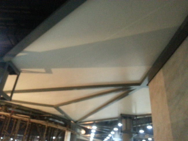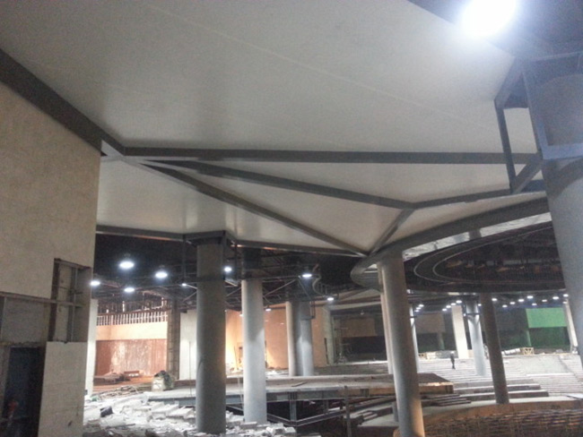 膜結(jié)構(gòu)室內(nèi)吊棚是一種軟性材料,是根據(jù)龍骨的形狀來確定它的形狀。所以造型比較隨意、多樣,讓設計師更具創(chuàng)造性,可直接安裝在墻壁、木方、鋼結(jié)構(gòu)、石膏間墻和木間墻上,適合各種建筑結(jié)構(gòu)。并且膜結(jié)構(gòu)室內(nèi)吊棚只需用螺絲釘按一定距離均勻固定即可,安裝十分方便。在整個安裝過程中,不會有溶劑揮發(fā)、不落塵、不對本空間內(nèi)的其它擺設產(chǎn)生影響,不影響正常的生產(chǎn)工作生活秩序。